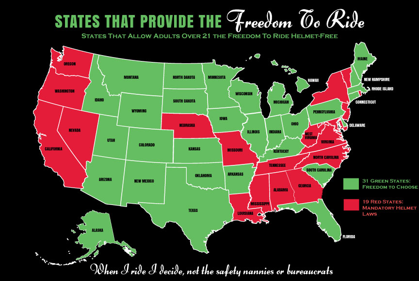 Tennessee is one of only 19 states to require the driver of a motorcycle and any passenger to wear a helmet. The law not only takes away the individual liberty of motorcyclists in Tennessee and those traveling through the state; it costs the state significant tourism revenues.